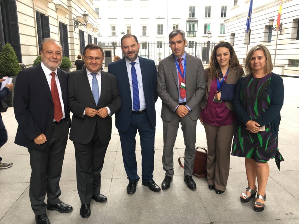 El alcalde y secretario general del PSOE de Benalmádena, Víctor Navas; la concejala Encarnación Cortés y los diputados socialistas Miguel Ángel Heredia, Begoña Tundidor y José Andrés Torres Mora se han reunido hoy con el ministro de Fomento, José Luis Ábalos, en el Congreso de los Diputados para abordar el desarrollo de los trabajos del acceso a Benalmádena desde el KM. 222 de la A-7. En este sentido, el ministro les ha asegurado que las obras marchan a buen ritmo, posibilitando que los plazos inicialmente barajados se acorten.