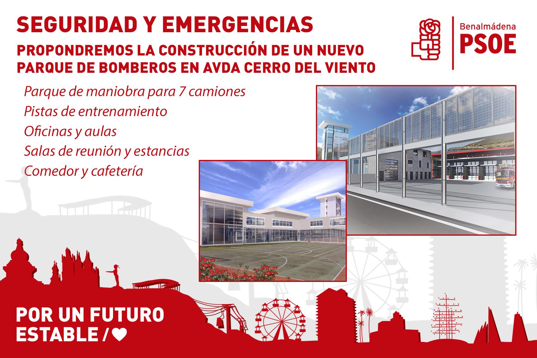 “También impulsaremos definitivamente la construcción del nuevo parque de bomberos, del cual ya se han realizado los estudios geotécnicos pertinentes, y para el cual ya hay un anteproyecto: los socialistas no prometemos, sino hacemos, y por eso esta legislatura ya hemos sentado las bases de este proyecto”, ha puesto en valor.