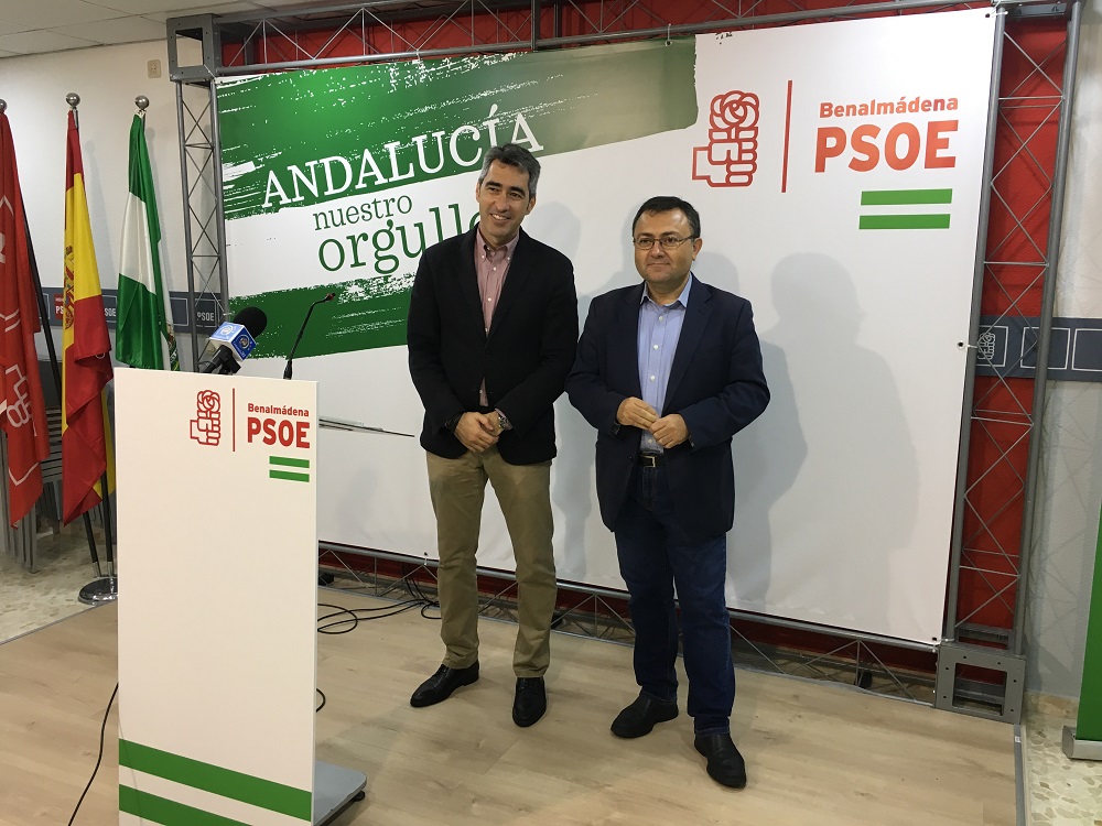 El secretario general del PSOE de Benalmádena y alcalde del municipio, Víctor Navas; y el diputado nacional del PSOE por Málaga, Miguel Ángel Heredia, han ofrecido esta mañana una rueda de prensa para solicitar al Gobierno de Mariano Rajoy que acelere las obras de mejora del acceso al municipio del KM.22 para recortar sus 57 meses de plazo de ejecución y adelantar su finalización al otoño de 2019.
